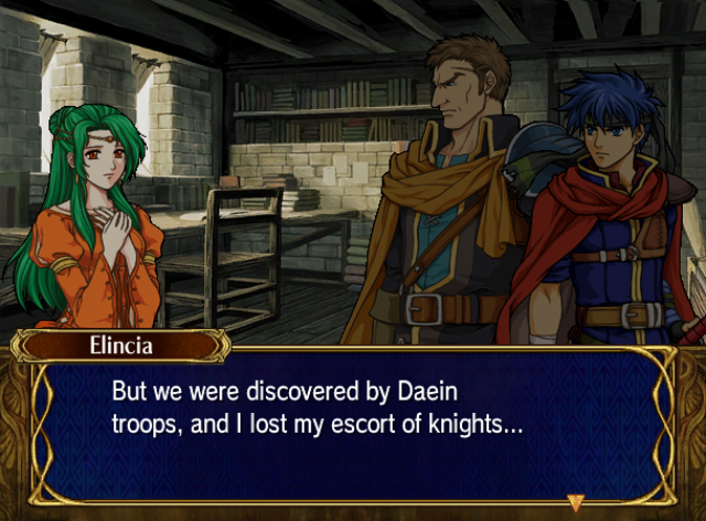 Elincia asks if she can fight. Ike says no. Dammit, Ike, she's good!