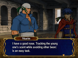 Muarim is a former slave, so has a bit more of a defeatism to him that makes Lethe and Mordecai appear much more outgoing about how they decry laguz prejudice.
