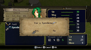 Time for the statups. Sanaki and Elincia get the other two Robes, although I always did think Leanne was due for one mentally before now. She doesn't care that much practically, but still. At any rate, since it's so easy to ram caps, there are a lot of people who have already capped HP in this army. As a matter of fact, these are not only to reinforce the bulk of these two, but to cap their HP and help their other stats out.