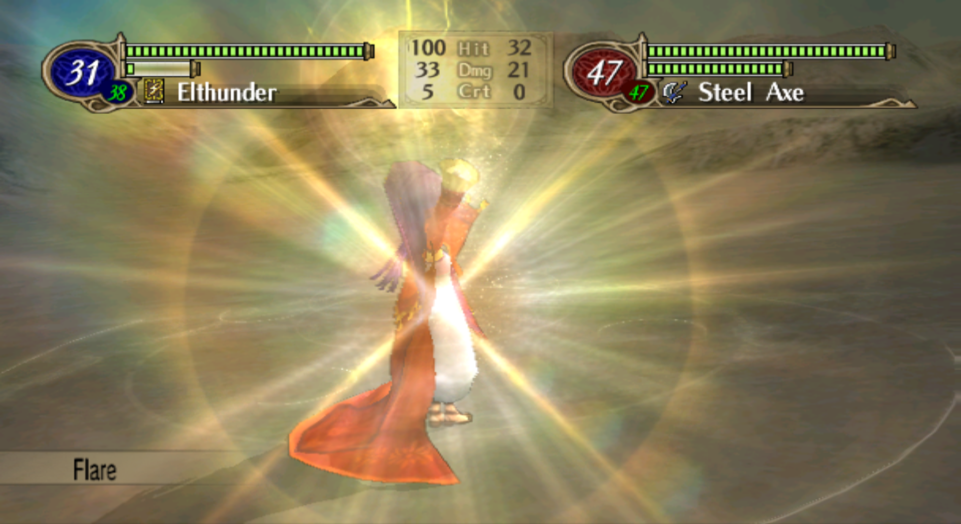 Incidentally, this is not actually Sleep, but Elsleep, a distinction without a difference. Well, OK, that's not really true, 1-30 range is massive compared to 1-Mg/2- this Bishop should only be able to shoot 11 squares away, which considering his position, is just barely further than Numida can Purge and somewhere we won't be standing until Turn 3 or 4. I've seen Elsleep work on characters in the starting positions. At least it has one less cast.