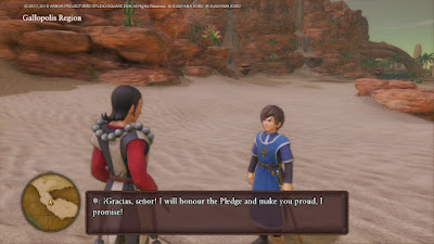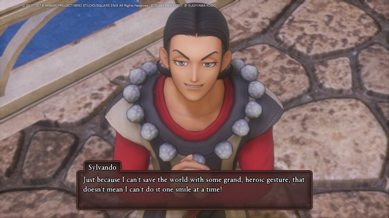 We now have control over Sylvando. The four Side Story characters now have playable roles. Despite this, it's impossible to play as them in the main game- presumably, the animators didn't want to assign animations to everything Erdward can do for each party member- there's a lot of things you wouldn't think of in that list. Nevertheless, party members have a surprising amount of things they can do as overworld characters, including jumping, landing first strikes (although there's only one animation for that- Erdward has a separate one for sword strokes and greatsword strokes), and even some collection point stuff.
