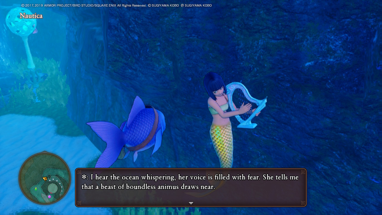 While transformed into a fish, the contents of Nautica have expanded significantly. You also have altered controls- mostly just a button to rise and fall while swimming. Sadly, no button to move forward faster.