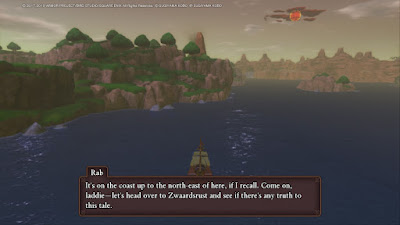 With the Stallion ready for use, Dave has now reappeared at port. I don't think I've ever actually tested Zooming to Puerto Valor, running to the Emerald Coast and trying that port. In DQ games past, that would not be allowed, but I think DQ11 might make an exception because of how its overworld works?
