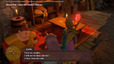 I've previously mentioned that the town of Jipang from DQ3, from which Hotto borrows liberally aesthetically, is also a heavy inspiration for the Town Story, and it's about time we started making comparisons. Jipang is being tormented by Orochi- OK, the Orochi attacking Jipang only has five heads, not eight- who is also demanding human sacrifices for appeasement- mainly because this is something the mythological Orochi does.