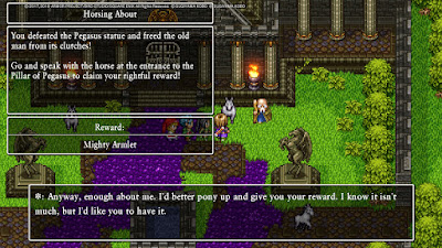 That was a lot of Tickington. Part of the problem with Tickington as a gameplay mechanic is that you really don't necessarily know when the best times to put down what you're doing and go check on it are, which can leave you doing a bulk job like this even unintentionally. In hindsight, the Roamer Encampment and Pillar of Pegasus were beyond my power level at this stage of the game- which is part of the reason I just haven't done Baramos's Castle outright, that would slaughter me if Obstructicus and Nagasus were any indication- but they're not the worst if you did them before leaving Act 2. The Ruby Path of Doom isn't a horrible place to train if you're worried about Mordegon-in-Heliodor, which I was- but not doing it in Act 2 means going without the Benevolessence, which is honestly a good prize to have on hand for Mordragon.