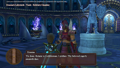 Drustan follows up that otherwise surprisingly solid conversation about Erdward's romantic difficulties by compounding them further: Clearly we're supposed to put down our married life to keep up this quest so we can power up enough to get Serena a haircut and Rab new pornographic material.