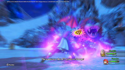 Veronica has finally learned the normal Magic Burst. This was a spell introduced in DQ6 as the ultimate spell, being the entire reason that Sorceria was sealed away to try and prevent its use against Mortamor, before just becoming a powerful spell that some kind of magic class taught you in DQs 7-9-10, and one of Jessica's hard-to-learn spells in 8. Like Mighty Magic Burst, it does fixed damage based on Veronica's remaining MP- unlike Mighty Magic Burst, Veronica can use this whenever. Just bring a lot of Elfin Elixirs. It's 3x MP in this game, something it hasn't been since DQ6 for the SFC.