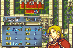 These two are the red and green knights of Sacred Stones. Kyle is the stronger one, Forde is the speedier one. Considering how badly I do when given cavaliers, these two aren't going to be doing much, but...