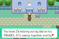 At this point, Birch gets around to giving us the Pokedex and suggesting we fill it up.