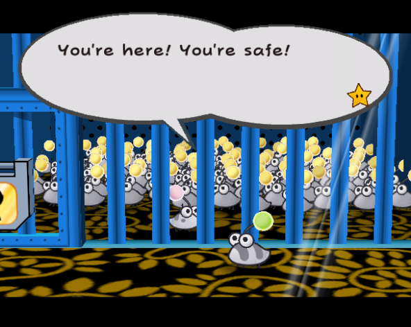 The Punies have dialogue if you Paper Mode into their cells, although this of no use to you.