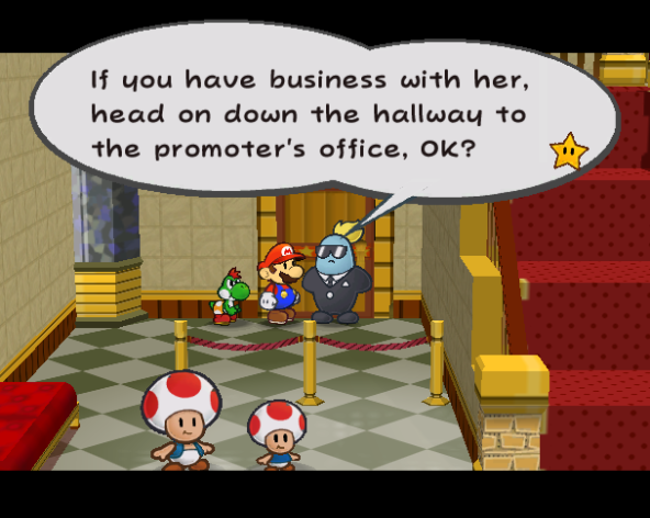 On this map, Goombella doubts Luigi's stories openly. I think this is the only time he's here in West Rogueport, though.