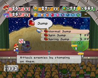 Mario manages to hit the Spring Jump this time. 17 damage in one hit.