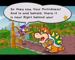 Surprisingly, if we were going in the pattern of Bowser always being two chapters behind, Poshley Sanctum is where he should be this time. I always assumed they had abandoned the "two chapters behind" thing by now and were just sending him to fake Crystal Stars.