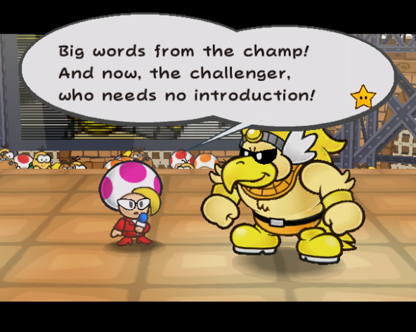 Bobbery: Righty-o, Mario! Fisticuffs with the champion, at last! I shan't disappoint you!