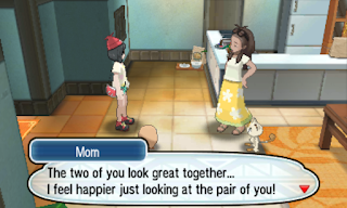 Say hello to our Mum. Every protagonist begins the adventure living with Mum and not Dad, and the series rarely considers explaining why to be a high priority- unlike most JRPGs, our dad isn't going to show up dead or at the scientifically selected least convenient time. Funnily enough, the Ultra games apparently did slip in a mention of what our dad's up to (he's fine, he just didn't want to come to Alola.)