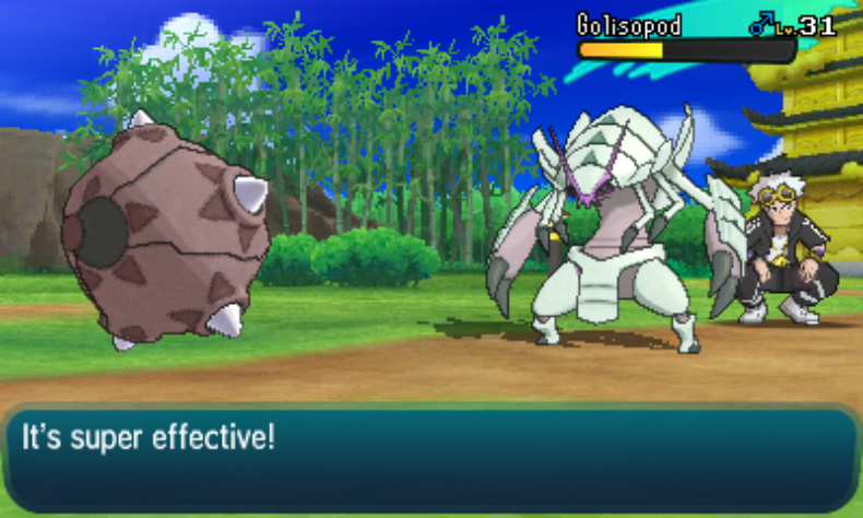 There's just something comical about seeing something that looks as terrifying as Golisopod, and sending out this piece of konpeito candy.