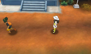 Arabella, incidentally, is a generic Trainer found in the Viridian Gym... in HGSS. Remember how they didn't go to the effort of giving the Nugget Bridge knockoffs the same names as the originals? They did go to the effort of actually using a random Gym Trainer for this random moment.